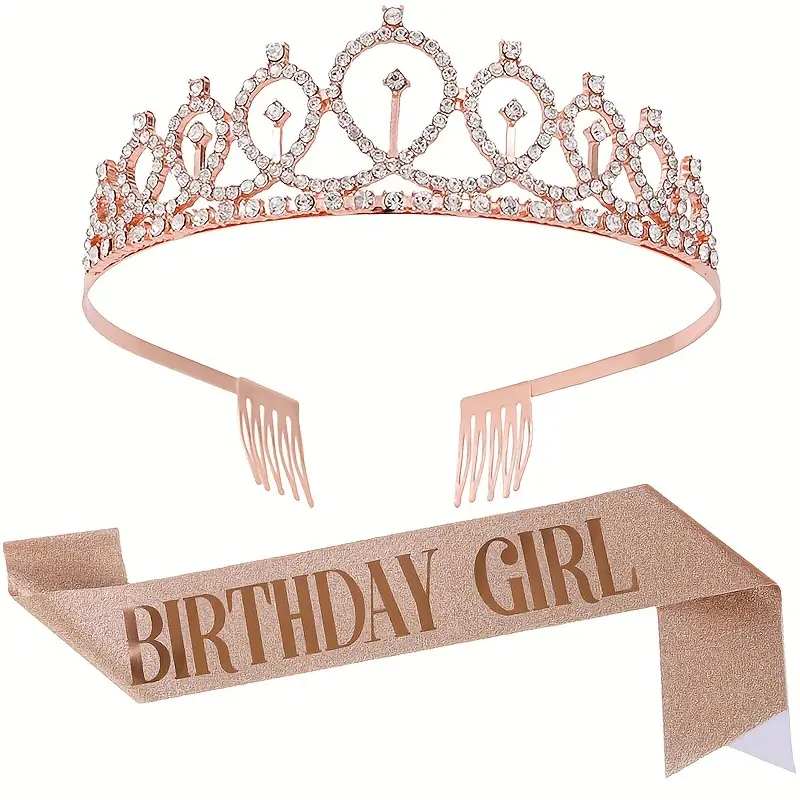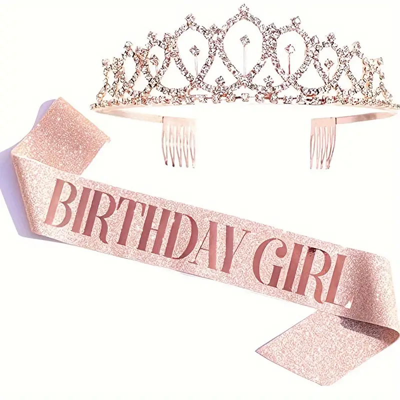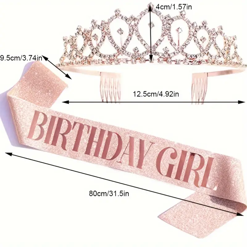 2pcs/set Birthday Party Supplies, Birthday Girl, Queen Rhinestone, Crystal Crown, Tiara, Sparking Glitter sash